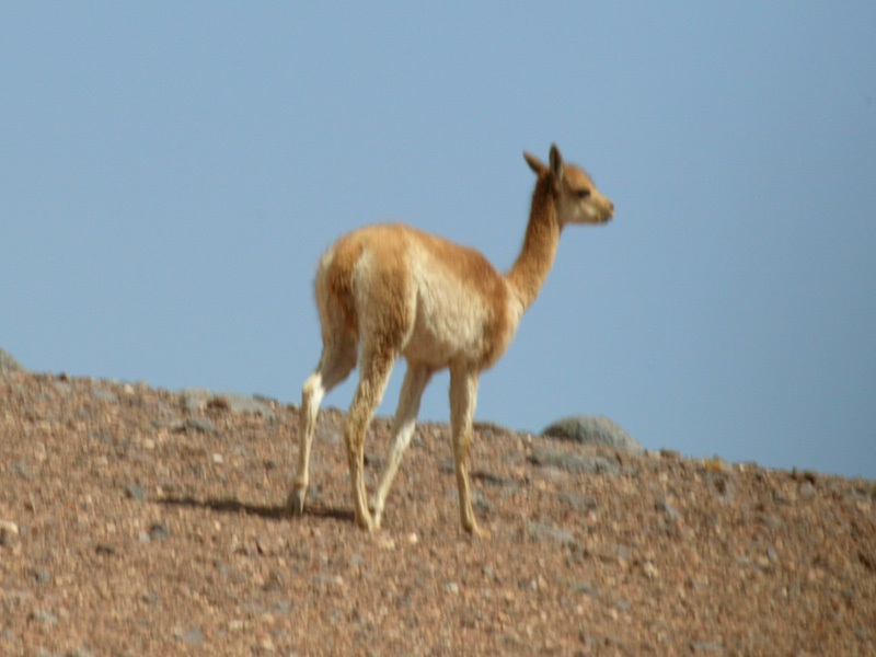 The vicuña (Vicugna vicugna) is one of two wild South American camelids, along with the guanaco, which live in the high alpineous areas of the Andes. It is a relative of the llama and the alpaca. Vicuñas produce small amounts of extremely fine wool, which is very expensive because the animal can only be shorn every 3 years. When knitted together, the product of the vicuña's fur is very soft and warm. It is understood that the Inca raised vicuñas for their wool, and that it was against the law for any but royalty to wear vicuña garments. Both under the rule of the Inca and today, vicuñas have been protected by law. Before being declared endangered in 1974, only about 6,000 animals were left. Today, the vicuña have recovered to about 125,000 but organizations such as the IUCN and the U.S. Department of the Interior still consider it endangered.